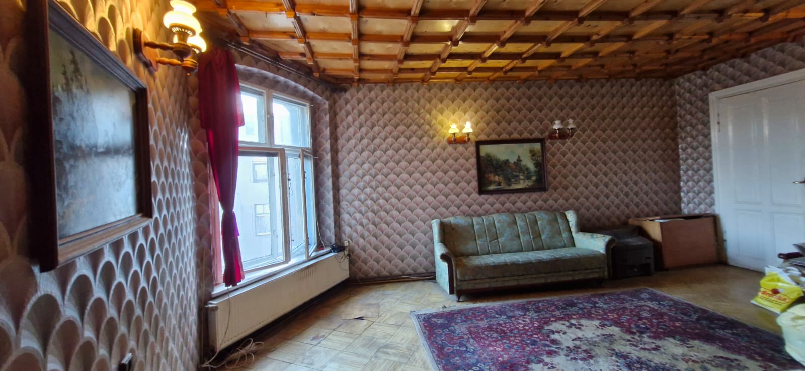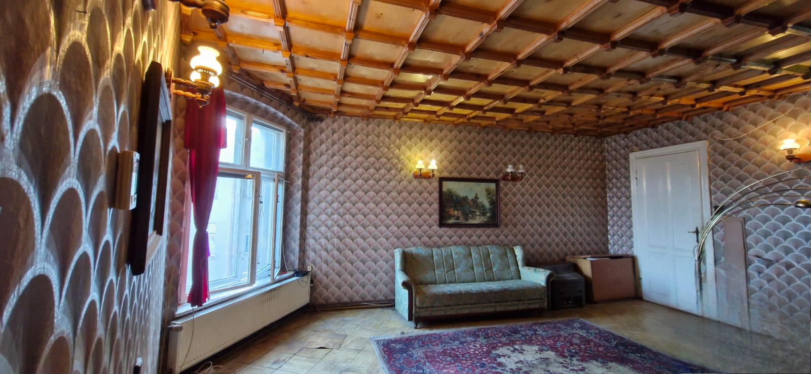 Wysokie sufity, drewniane okna (do wymiany)