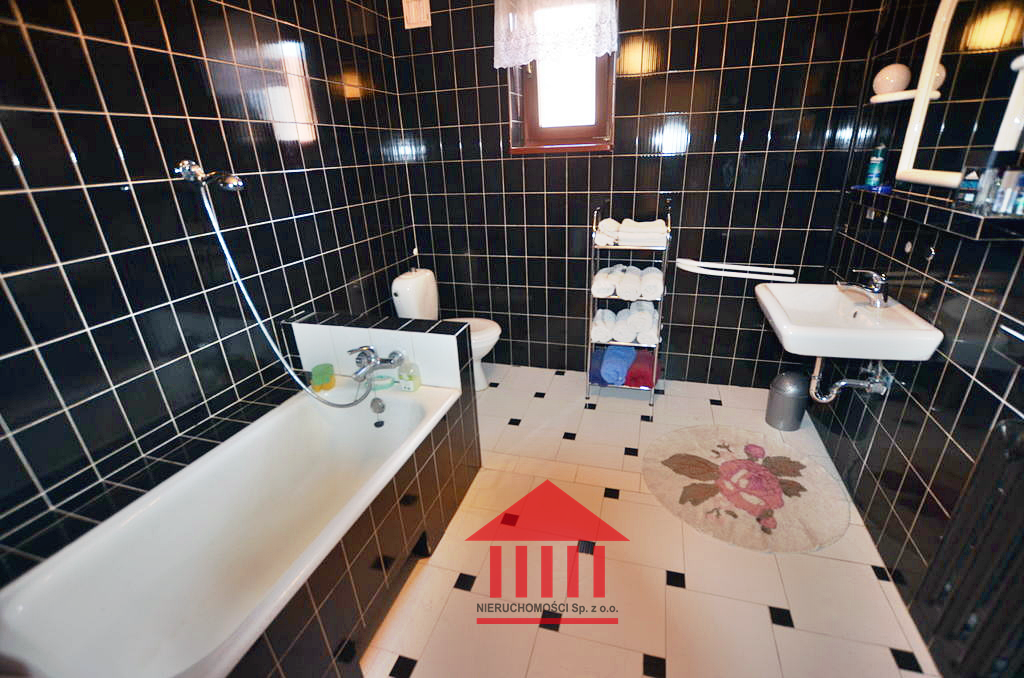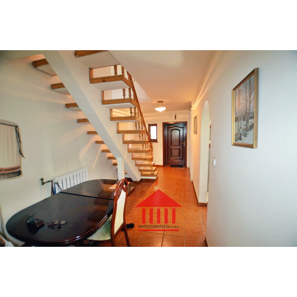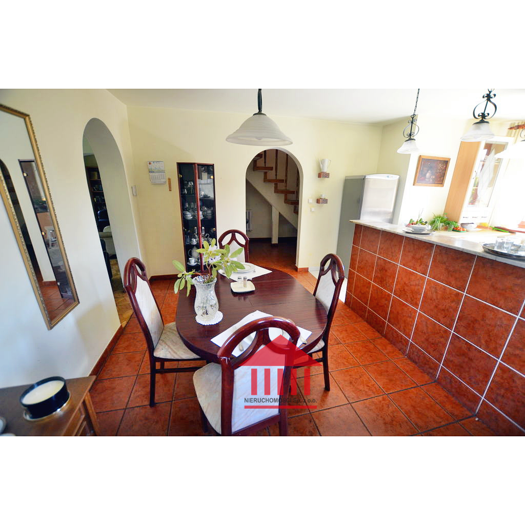 Na parterze znajduje się dobrze doświetlona część dzienna z salonem, kuchnią z jadalnią, gabinetem, i łazienką .Na pierwszym piętrze znajdują się 3 sypialnie oraz łazienka. Przed domem znajduję się wyłożone kostką miejsce parkingowe, a z tyłu budynku znajduje się taras. W piwnicy znajdują się 4 pomieszczenia do własnej aranżacji