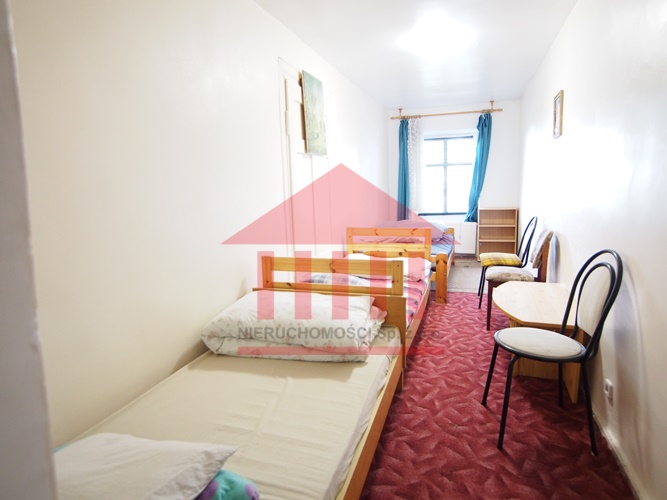 BUDYNEK POSIADA: salę balową, około 15 pokoi mogące pomieścić 70 miejsc noclegowych z możliwością dołożenia dodatkowych 30 miejsc oraz tej samej ilości łazienek, dużą wyposażoną kuchnię, piwnicę oraz zaplecze socjalne.